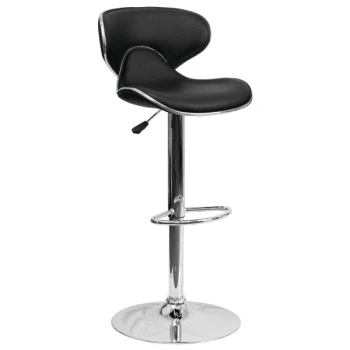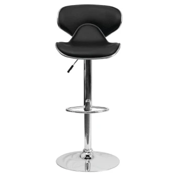 - Contemporary Cozy Mid-Back Black Vinyl Adjustable Barstool With Chrome Base