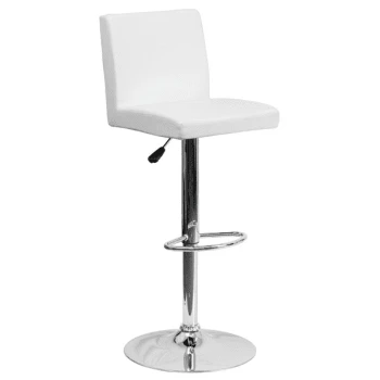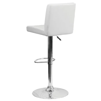 - Contemporary White Adjustable Barstool Chrome Base Straight Mid Back Design