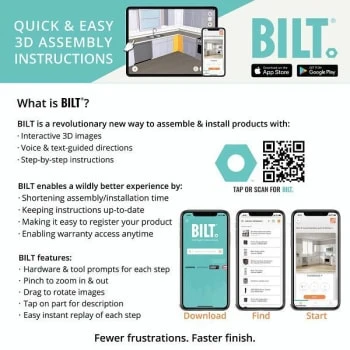 - Cabinets do not include hardware (decorative, installation or countertop installation)