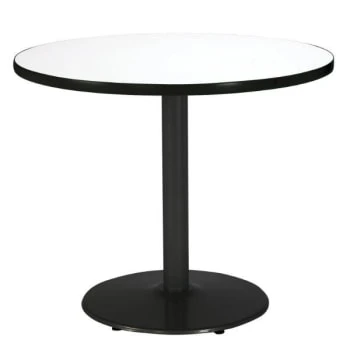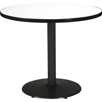 - 30″ Round Pedestal Table With Crisp Linen Top, Round Black Base