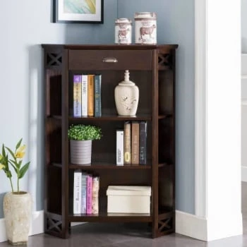 - Leick Home One Drawer Mantel Height Three Shelf Corner Bookshelf