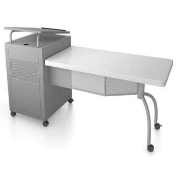 - Oklahoma Sound® Edupod Teacher’s Desk & Lectern Combo, Grey Hammer Tone