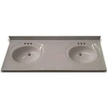 - 61 in. x 22 in. Custom Vanity Top Recessed Double Bowl in Solid White