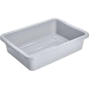 - The Rubbermaid commercial bus utility box features a 5 deep capacity along with holding up to 4-5/8 Gallon of product. The commercial bus utility box has rounded corners allowing for a smooth transition between doors and other equipment without damage. The commercial bus utility box is commercial dishwasher safe.