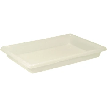 - Rubbermaid FG350600WHT 5 Gallon food storage box helps you keep your food fresh and organized. With a sturdy polyethylene construction, this economical food storage and transportation solution can hold anything from poultry and fish to bulk produce and more. It features rounded corners for added comfort and safety during use and thanks to the ridges on the bottom of the box, this unit can securely stack with other boxes that use the compatible lid (sold separately). Thanks to an integrated date control panel, inventory control is even easier than ever.
