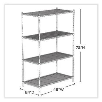 - Safco 4-Shelf Industrial Wire Shelving, 48″w X 24″d X 72″h, Metallic Gray