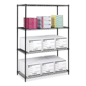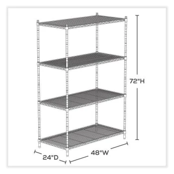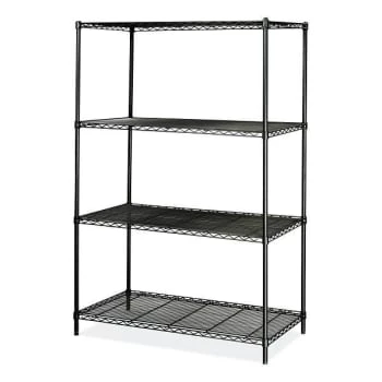 - Safco Industrial Wire Shelving, Four-Shelf, 48w x 24d x 72h, Black