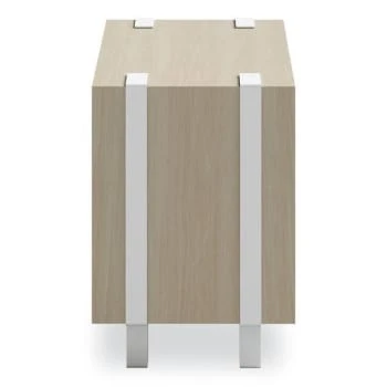 - Versatile design features beige wood laminate with a white powder coat steel frame