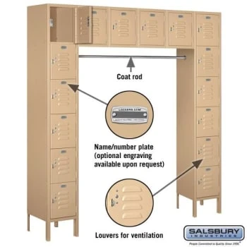 - Salsbury Industries® Tan- Six Tier Box Style Bridge Standard Metal Locker