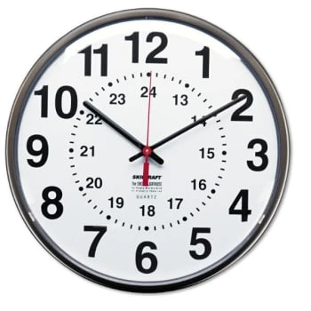 - Skilcraft 12/24 Hour Slimline Quartz Wall Clock, 12.75″ Diameter, Brown, 1 Aa